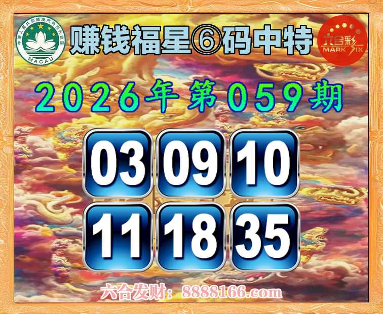 059期:【赚钱福星】 🚵♀️⑥码中特🚵♀️【03.09.10.11.18.35】开:10准