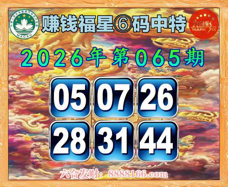 065期:【赚钱福星】 🚵♀️⑥码中特🚵♀️【05.07.26.28.31.44】开:05准