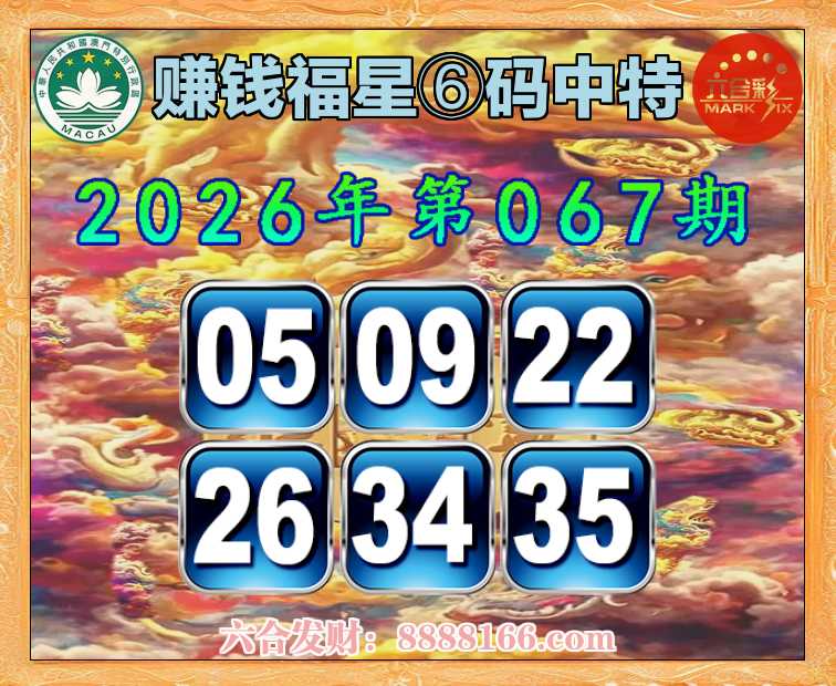 067期:【赚钱福星】 🚵♀️⑥码中特🚵♀️【05.09.22.26.34.35】开:05准