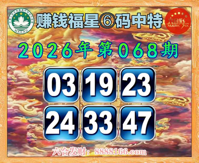 068期:【赚钱福星】 🚵♀️⑥码中特🚵♀️【03.19.23.24.33.47】开:23准