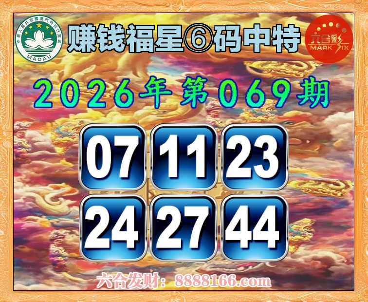 069期:【赚钱福星】 🚵♀️⑥码中特🚵♀️【07.11.23.24.27.44】开:24准