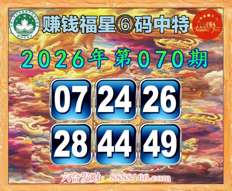070期:【赚钱福星】 🚵♀️⑥码中特🚵♀️【07.24.26.28.44.49】开:25错