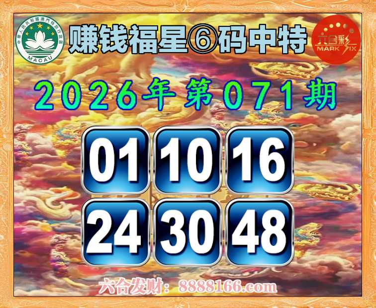 071期:【赚钱福星】 🚵♀️⑥码中特🚵♀️【01.10.16.24.30.48】开:48准