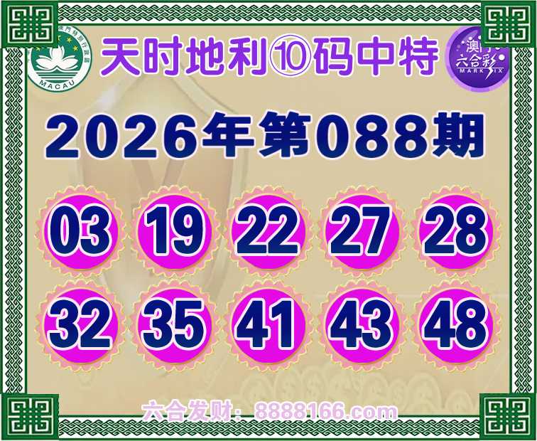 088期:『天时地利』 ⚽⑩码中特⚽开:27准