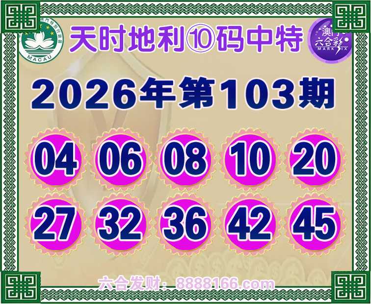 103期:『天时地利』 ⚽⑩码中特⚽开:06准