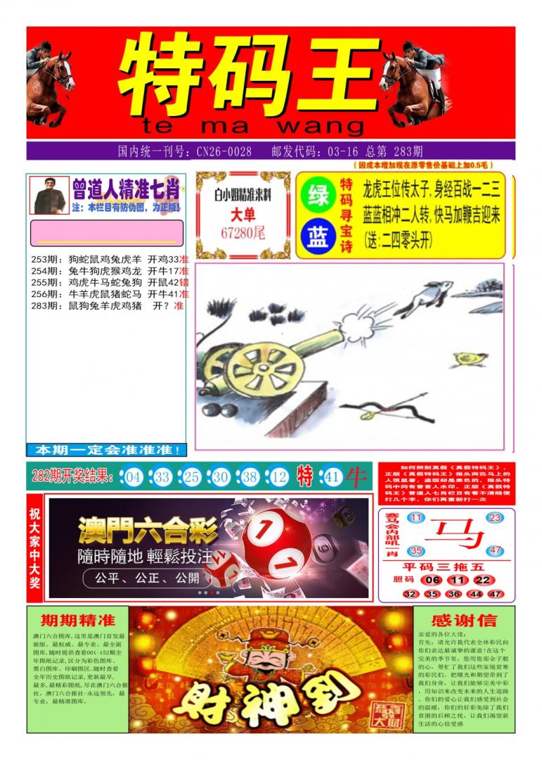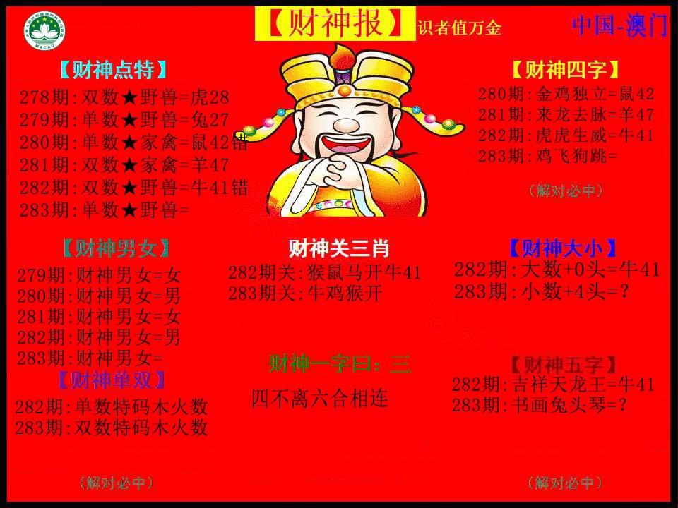 283期:【财神殿】→【主攻一码三中三】█彩民狂赚百万