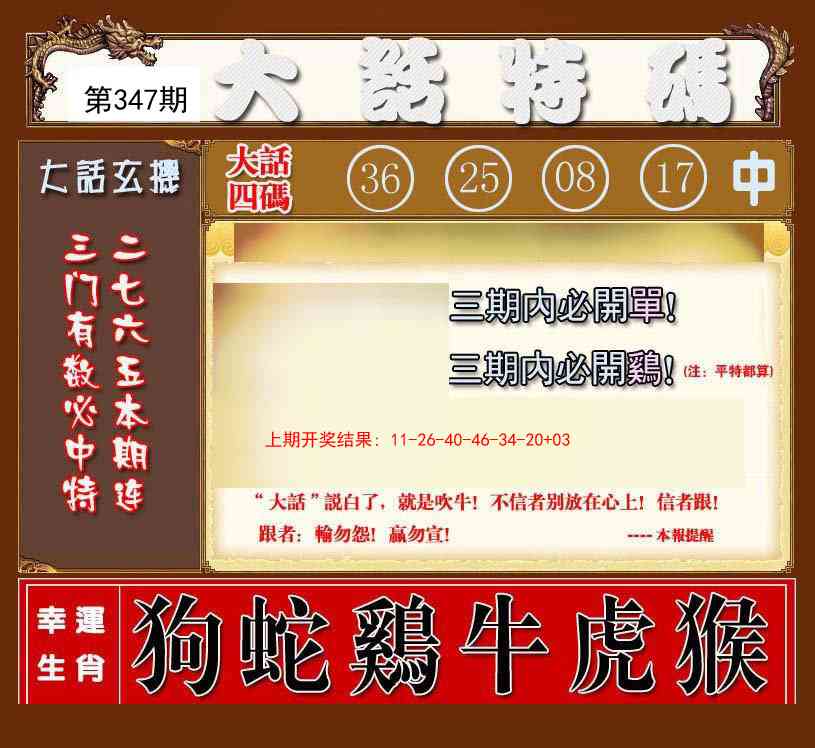 热门帖 347期:【彩皇爆料】 🀄【①波中特】 关注中奖 彩皇爆料