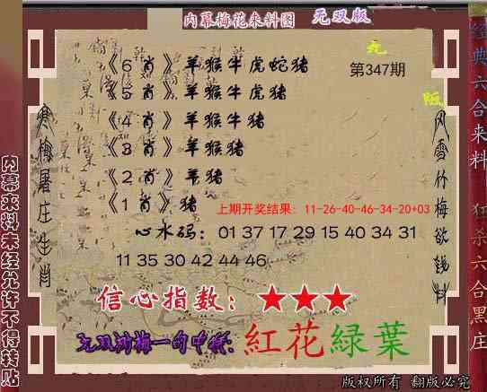 出售帖 347期:【大红大紫】 🀄【三码中特】 正版资料 大红大紫