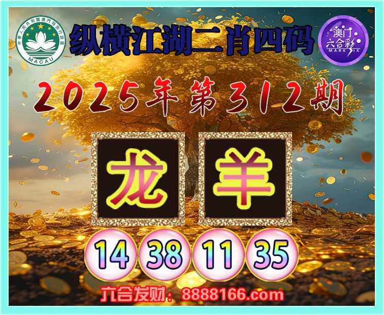 312期:《纵横江湖》 🍧二肖四码🍧【龙羊】【14.38.11.35】开:龙14准