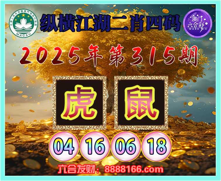 315期:《纵横江湖》 🍧二肖四码🍧【虎鼠】【04.16.06.18】开:虎04准