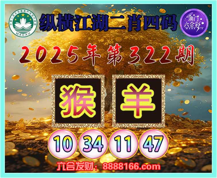 322期:《纵横江湖》 🍧二肖四码🍧【猴羊】【10.34.11.47】开:羊47准