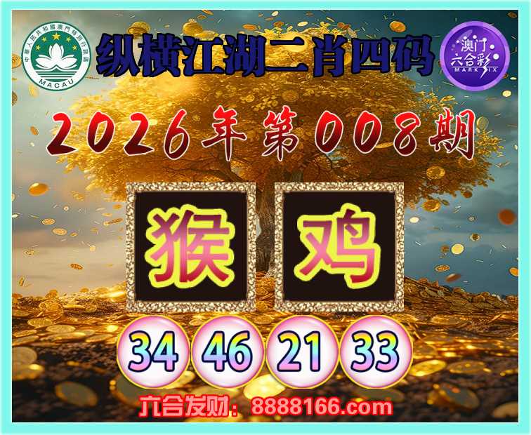 008期:《纵横江湖》 🍧二肖四码🍧【猴鸡】【34.46.21.33】开:鸡21准