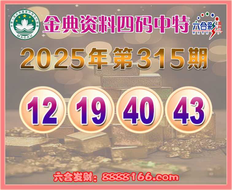 315期: ✨『金典资料』 ✨四码中特✨【12.19.40.43】开:04错