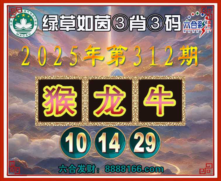 312期:『绿草如茵』 🏅③肖③码🏅【猴龙牛】【10.14.29】开:龙14准