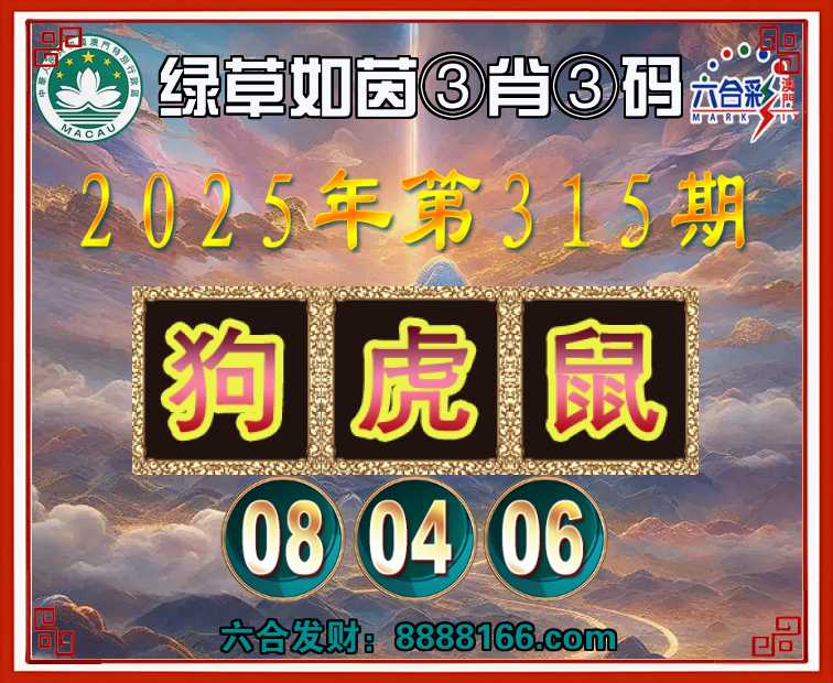 315期:『绿草如茵』 🏅③肖③码🏅【狗虎鼠】【08.04.06】开:虎04准