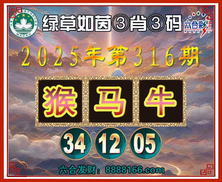 316期:『绿草如茵』 🏅③肖③码🏅【猴马牛】【34.12.05】开:马24准