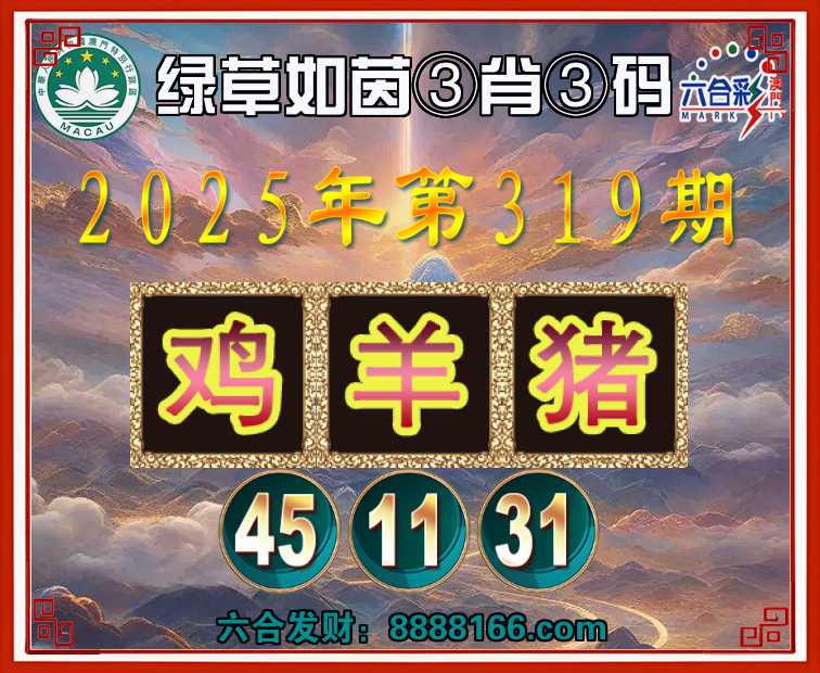 319期:『绿草如茵』 🏅③肖③码🏅【鸡羊猪】【45.11.31】开:鸡45准