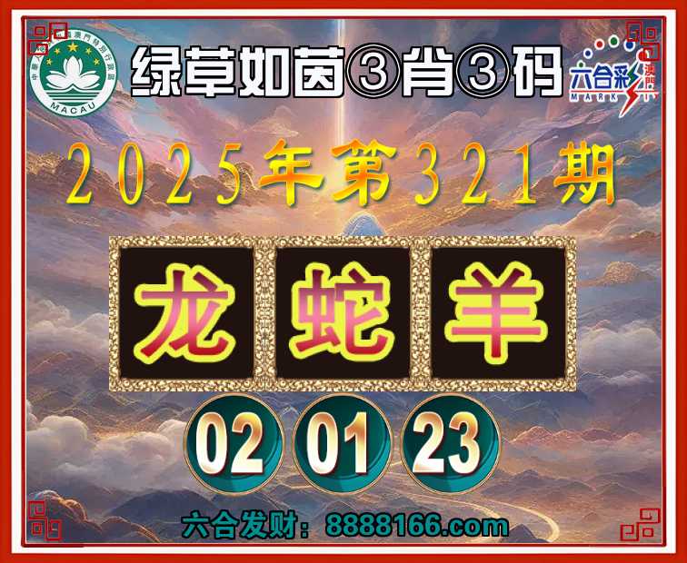 321期:『绿草如茵』 🏅③肖③码🏅【龙蛇羊】【02.01.23】开:羊23准