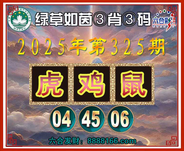 325期:『绿草如茵』 🏅③肖③码🏅【虎鸡鼠】【04.45.06】开:虎04准