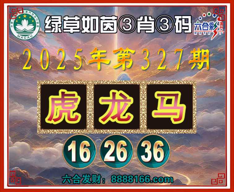 327期:『绿草如茵』 🏅③肖③码🏅【虎龙马】【16.26.36】开:蛇37错