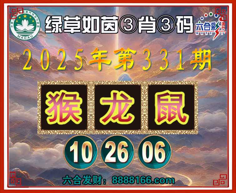 331期:『绿草如茵』 🏅③肖③码🏅【猴龙鼠】【10.26.06】开:龙26准