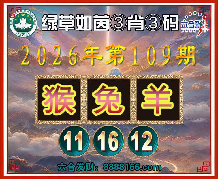 109期:『绿草如茵』 🏅③肖③码🏅【猴兔羊】【11.16.12】开:兔16准