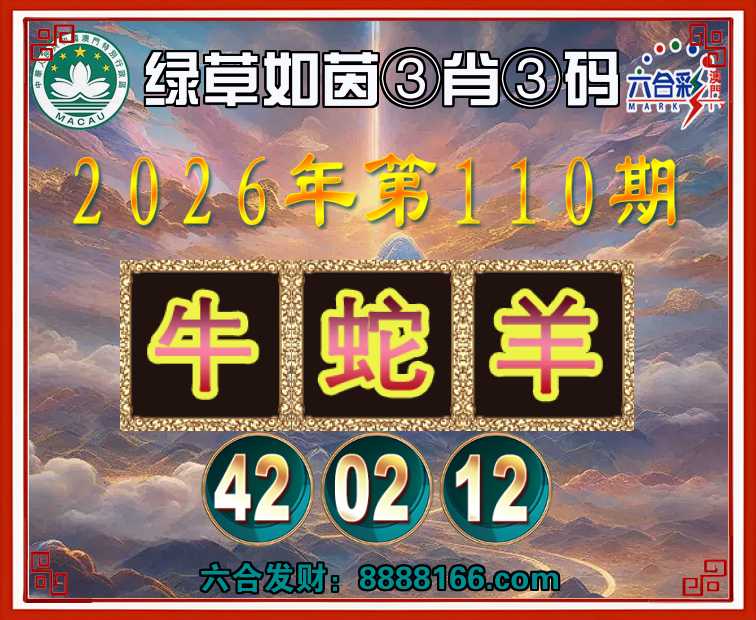 110期:『绿草如茵』 🏅③肖③码🏅【牛蛇羊】【42.02.12】开:牛30准