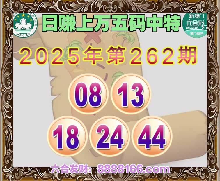 262期:《日赚上万》 🥽五码中特🥽【08.13.18.24.44】开:44准