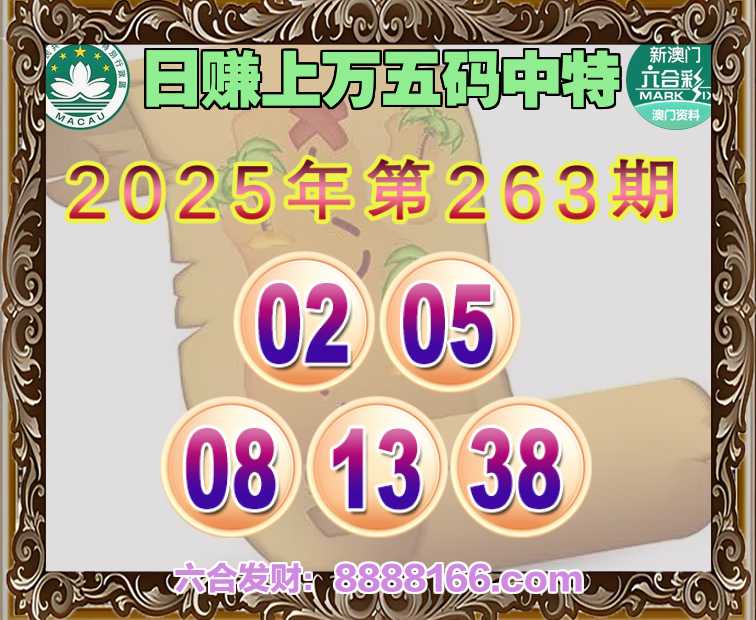 263期:《日赚上万》 🥽五码中特🥽【02.05.08.13.38】开:38准