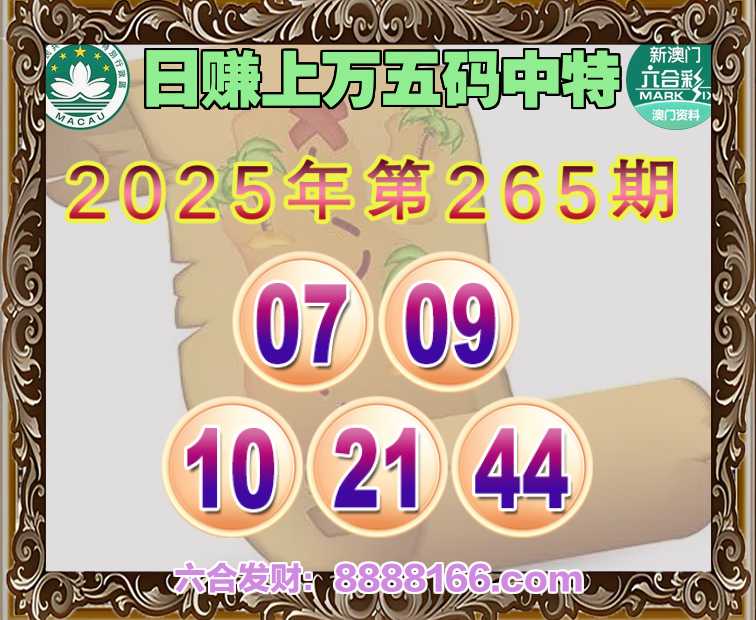 265期:《日赚上万》 🥽五码中特🥽【07.09.10.21.44】开:10准