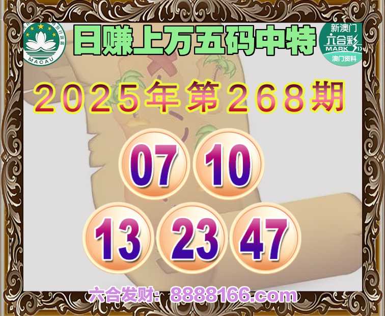 268期:《日赚上万》 🥽五码中特🥽【07.10.13.23.47】开:10准