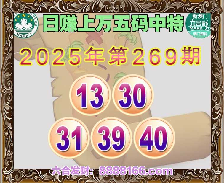 269期:《日赚上万》 🥽五码中特🥽【13.30.31.39.40】开:31准