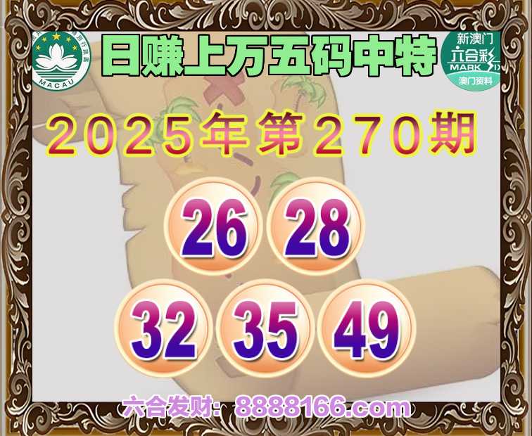 270期:《日赚上万》 🥽五码中特🥽【26.28.32.35.49】开:35准