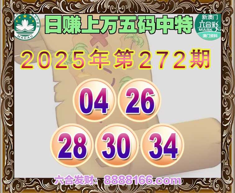 272期:《日赚上万》 🥽五码中特🥽【04.26.28.30.34】开:36错