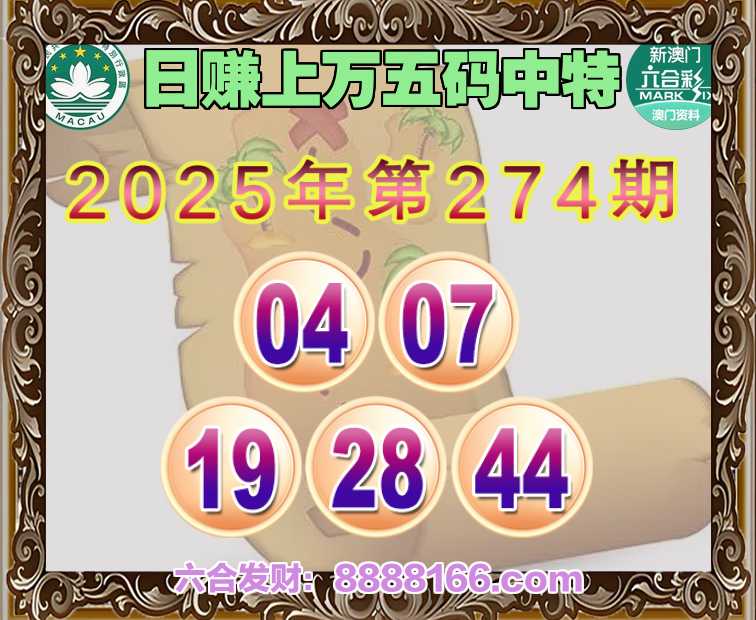 274期:《日赚上万》 🥽五码中特🥽【04.07.19.28.44】开:44准