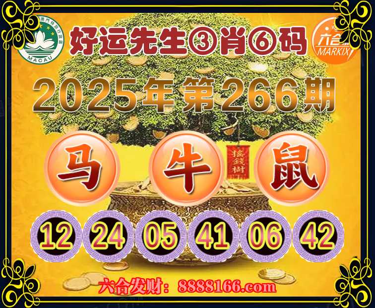 266期: 好运先生 🚡③肖⑥码🚡【马牛鼠】开:牛41准