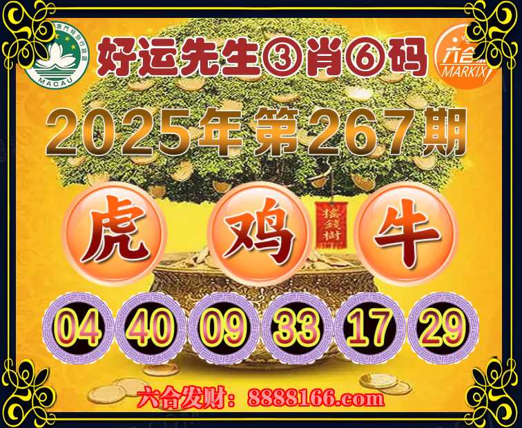 267期: 好运先生 🚡③肖⑥码🚡【虎鸡牛】开:牛29准