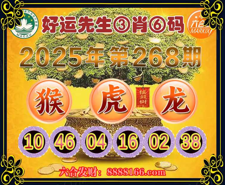 268期: 好运先生 🚡③肖⑥码🚡【猴虎龙】开:猴10准