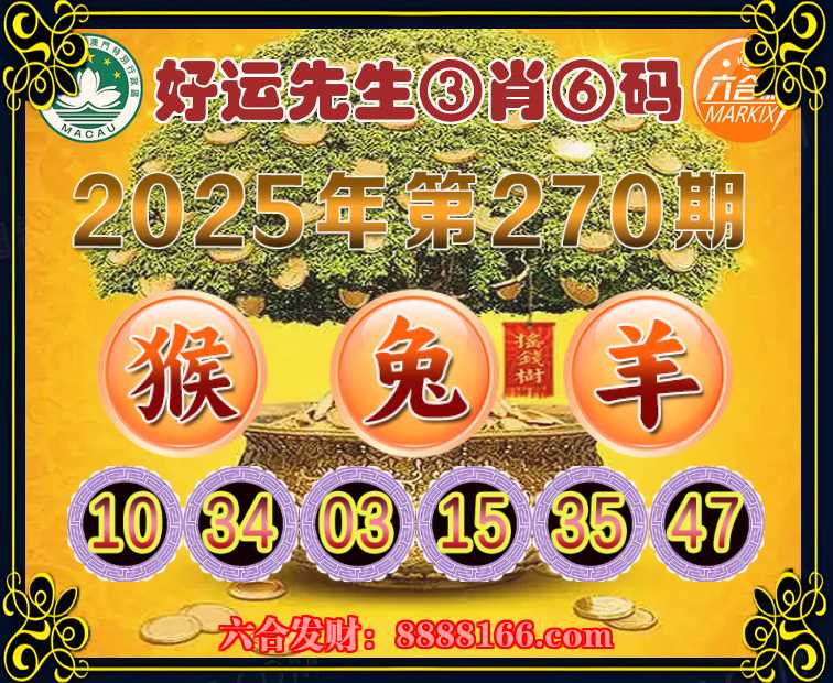 270期: 好运先生 🚡③肖⑥码🚡【猴兔羊】开:羊35准