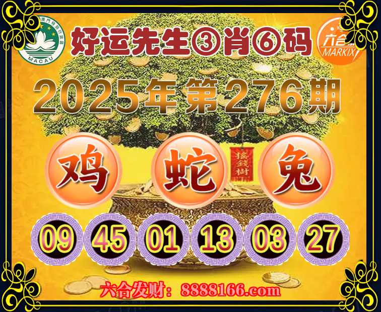 275期: 好运先生 🚡③肖⑥码🚡【鸡蛇兔】开:鸡45准