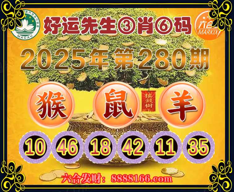 280期: 好运先生 🚡③肖⑥码🚡【猴鼠羊】开:鼠42准