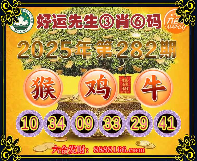 282期: 好运先生 🚡③肖⑥码🚡【猴鸡牛】开:牛41准