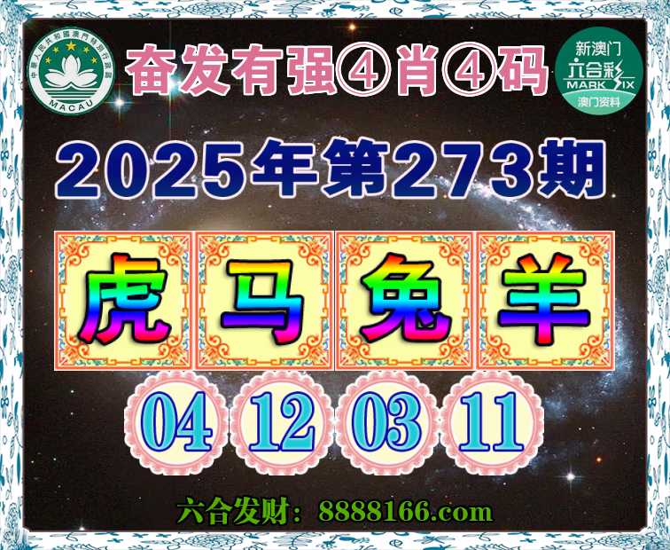 273期:《奋发有强》 🍎④肖④码🍎【虎马兔羊】【04.12.03.11】开:虎04准