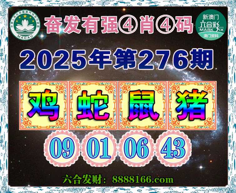 276期:《奋发有强》 🍎④肖④码🍎【鸡蛇鼠猪】【09.01.06.43】开:鸡09准