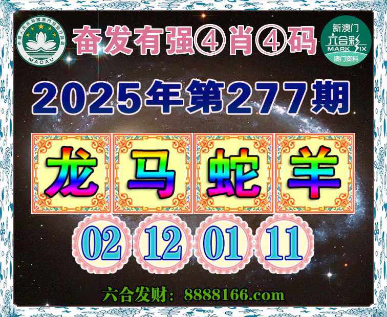277期:《奋发有强》 🍎④肖④码🍎【龙马蛇羊】【02.12.01.11】开:虎16错