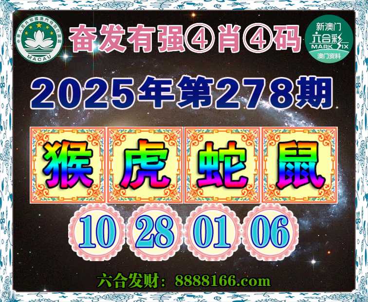 278期:《奋发有强》 🍎④肖④码🍎【猴虎蛇鼠】【10.28.01.06】开:虎28准
