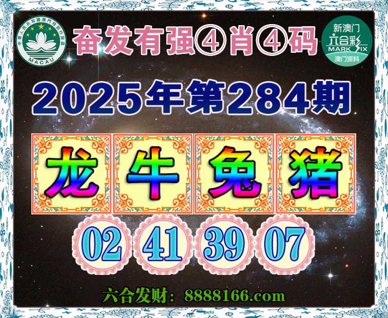 284期:《奋发有强》 🍎④肖④码🍎【龙牛兔猪】【02.41.39.07】开:牛41准