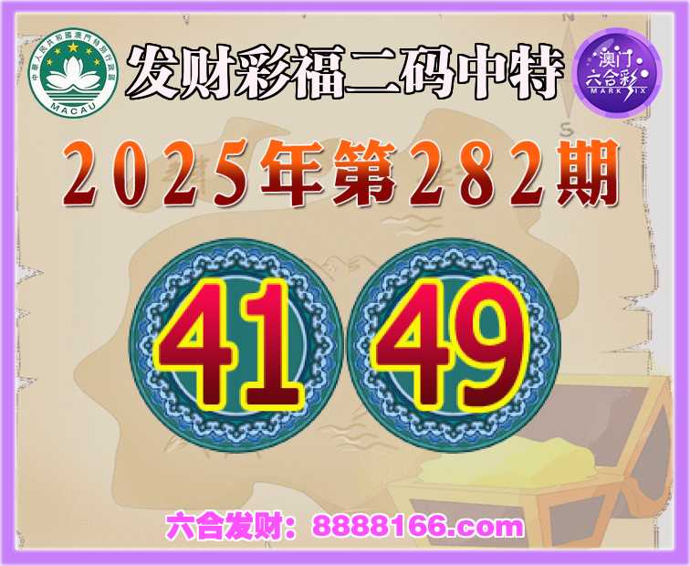 282期:【发财彩福】 🎈二码中特🎈【41.49】开:41准