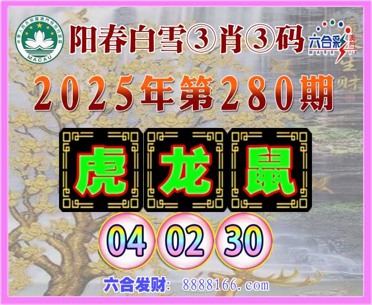 280期:《阳春白雪》 🥽③肖③码🥽【虎龙鼠】【04.02.30】开:鼠42准