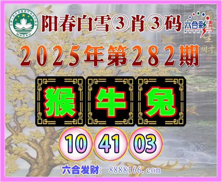 282期:《阳春白雪》 🥽③肖③码🥽【猴牛兔】【10.41.03】开:牛41准